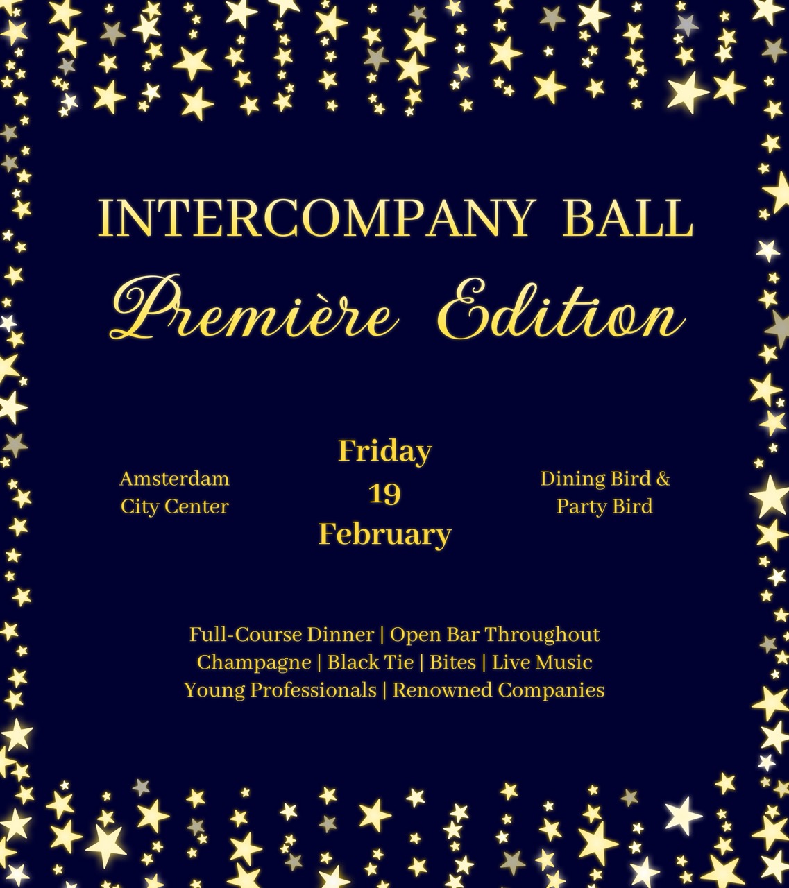 Op 19 februari 2027 komen we samen in hartje Amsterdam voor het spectaculaire Intercompany Ball. Startende met een heerlijk diner aan prachtige gedekte tafels, ontmoeten de young professionals elkaar in black-tie thema. De avond wordt vervolgd met een inspirerende voordracht, waarna de swingende jazz band het feestgedeelte opent.